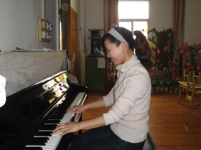 庞甜甜老师正在专注练琴