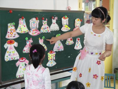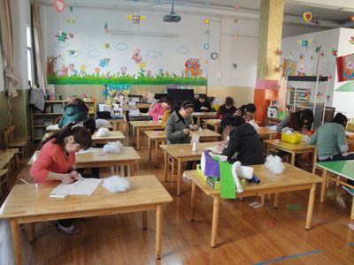 美术特长田培婷老师正在和孩子们进行美术创意